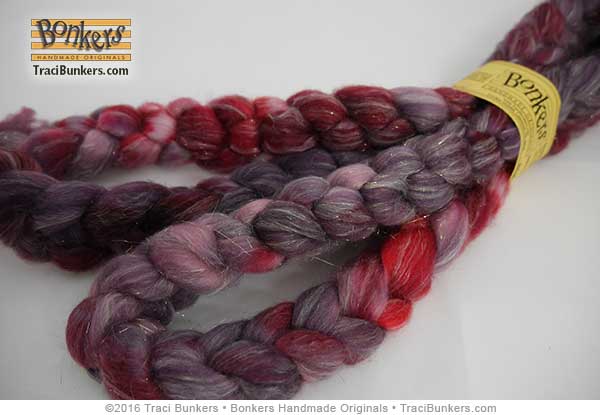 Hand-dyed Superwash Sparkle Spinning Fiber: Cranberry