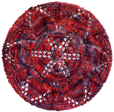 Click image to see it larger.This lacy tam is knitted from the center out and only uses 1 skein of yarn.