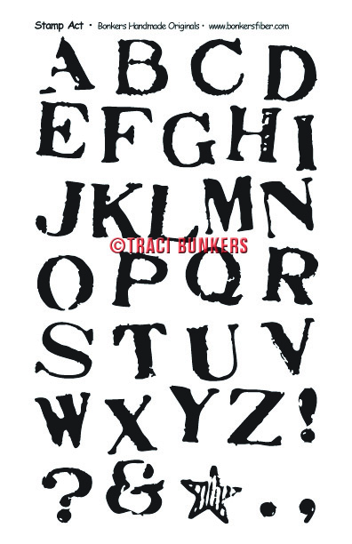 Click image to see it larger.This one is Stamp Act--a bit of a grunge, uppercase alphabet that is about 1" tall.